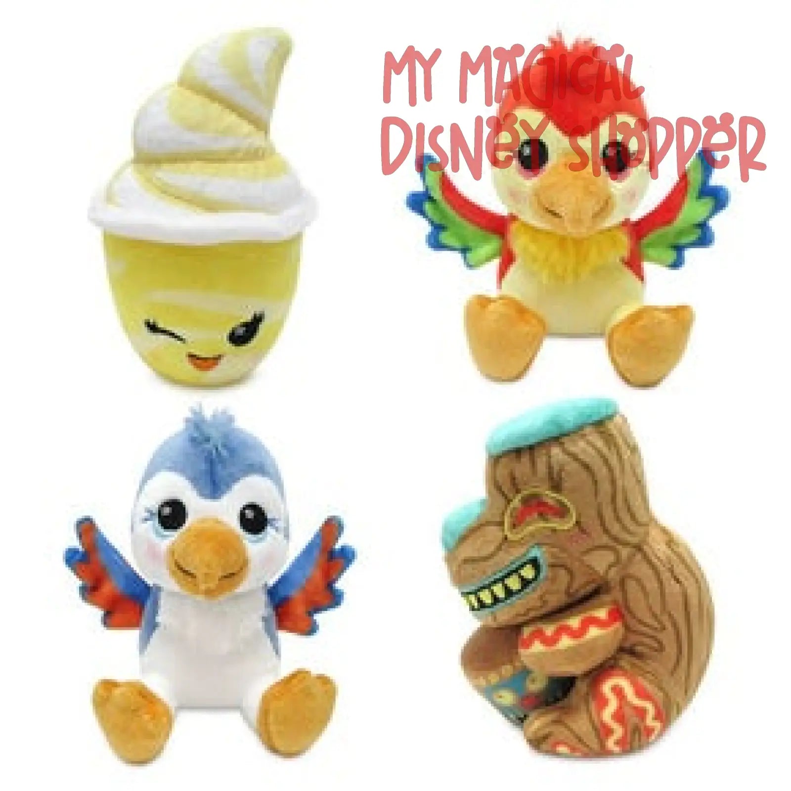 Take these soft, tropical friends from Walt Disney's Enchanted Tiki Room on all your south seas musical adventures. Each blind bag includes one of four standard plush (or a special chase plush) from the series, but you won't know which you have until you open the bag!
