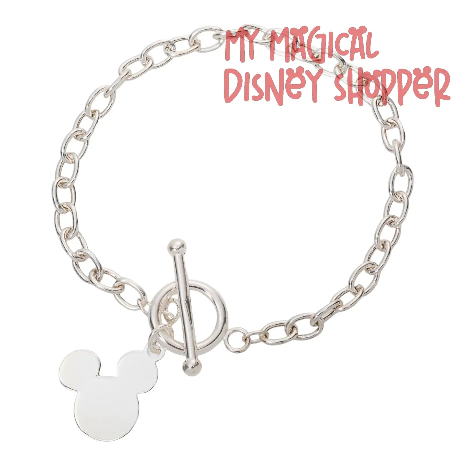 Women's Metallic Mickey Mouse Charm Toggle Bracelet In Sterling Silver